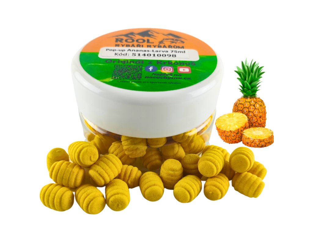 Plovoucí larvy ananasové - Zářivě žlutá ananasová larva, atraktivní je především díky své velmi nápadné barvě. Ovocná příchuť přitahuje veškeré kaprovité ryby. Vhodná na feeder i na jiné jemnější metody.