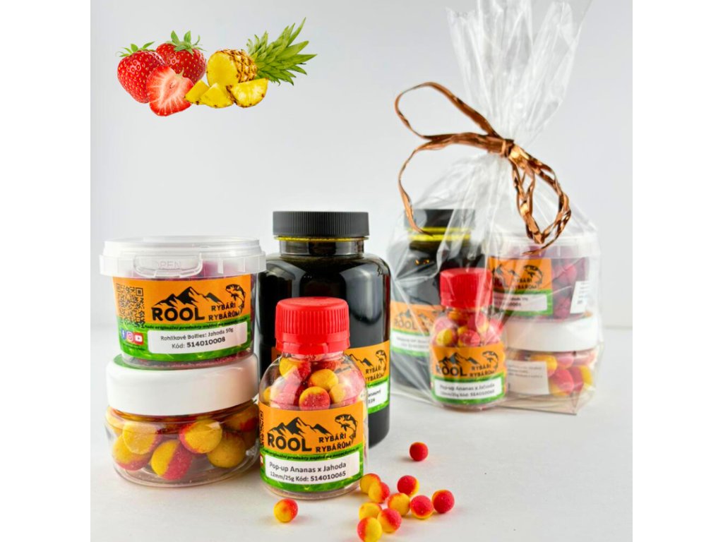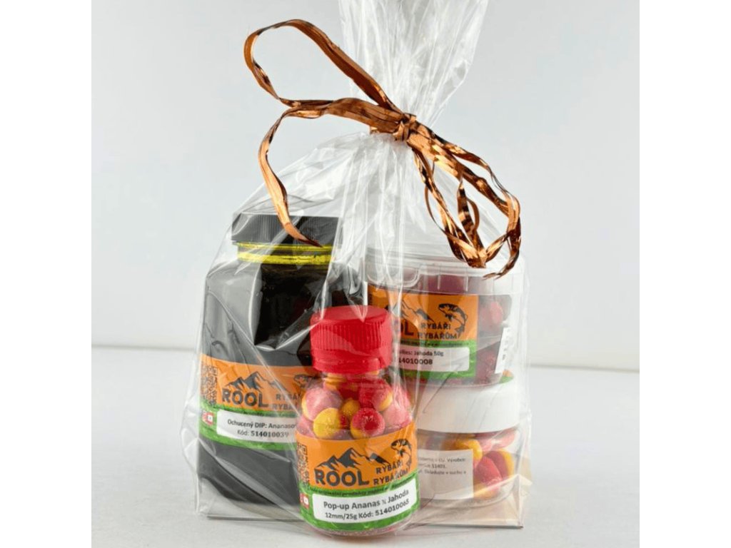 Dárkový balíček pro rybáře obsahuje ručně vyráběné kvalitní plovoucí boilies, tzv Pop-Up na lov ryb, převážně kaprů a amurů. Dále ananasový dip a jahodové rohlíkové boilies. Tato sada je sestavená tak, aby si lov s těmito produkty užil každý rybář, jsou vhodné na většinu běžných způsobů rybolovu. Dárkový balíček pro rybáře obsahuje následující produkty: